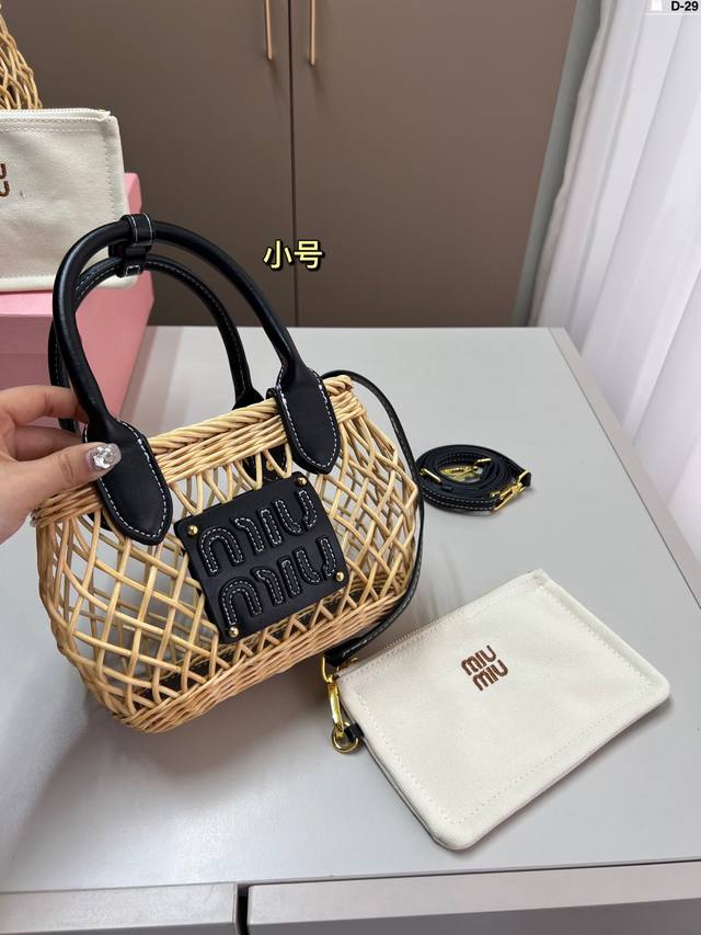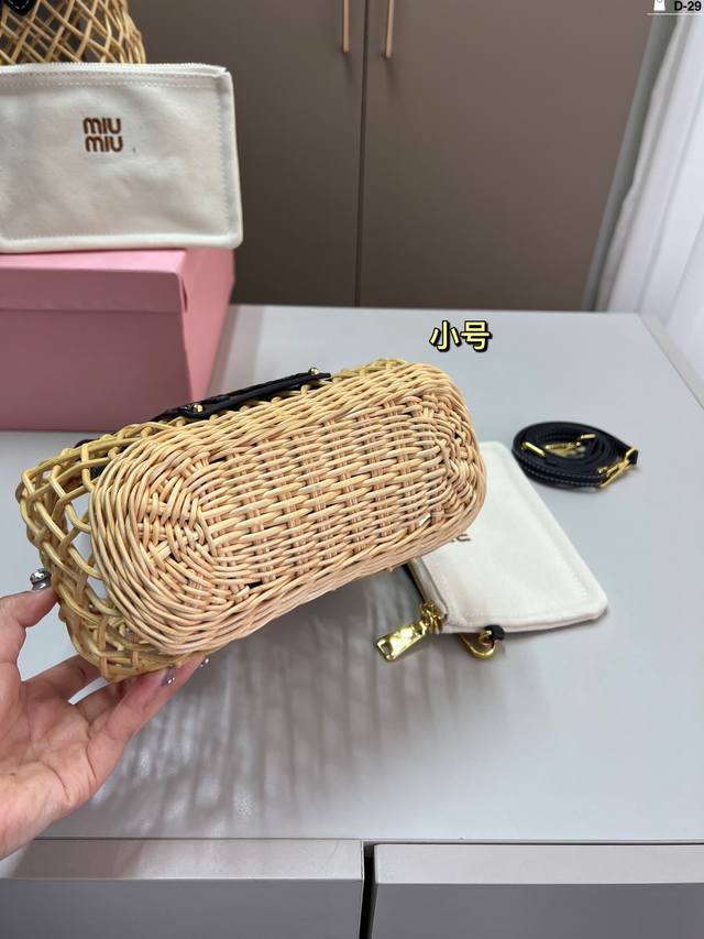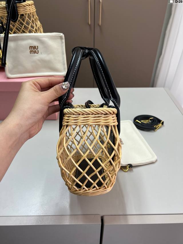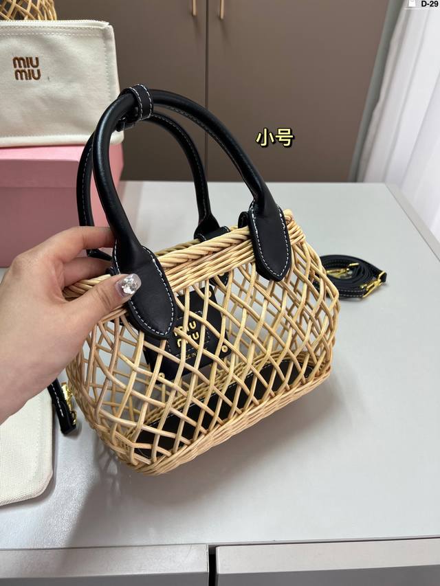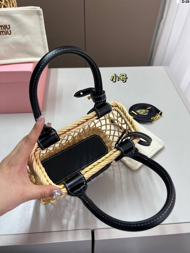 / 小P240 miumiu 25Ss 竹编菜篮子 藤编小篮子 镂空编织包 d-29尺寸20×15/25×18配盒