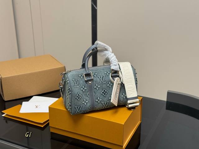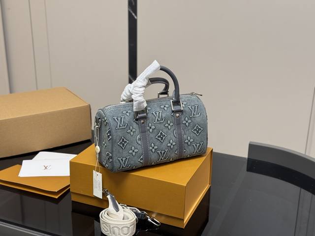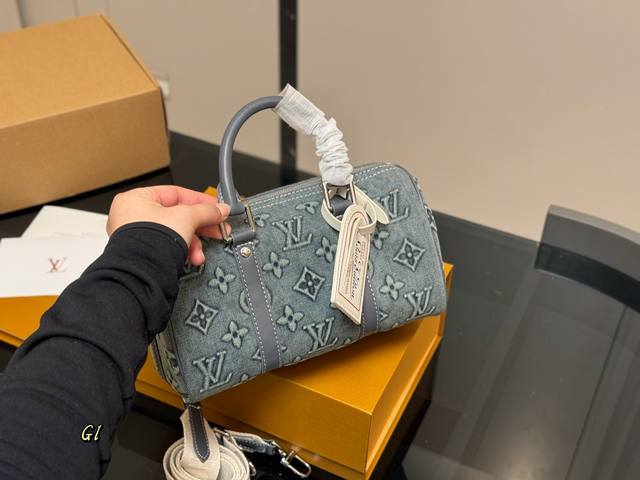 ¥250 配盒 尺寸:25*14Cm lv Keepall 枕头包 真的是小可爱! 贼适合的Keepall25牛仔蓝色! 男盆友的战包 搜索 Lv Keepal