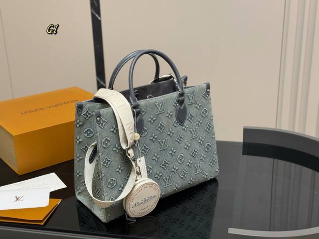 ¥250 配盒 size:34.28Cm lv Onthego牛仔购物袋 有隐藏的背带设计, 可单肩~可手提 搜索 Lv Onthego丛林购物袋 配折叠盒