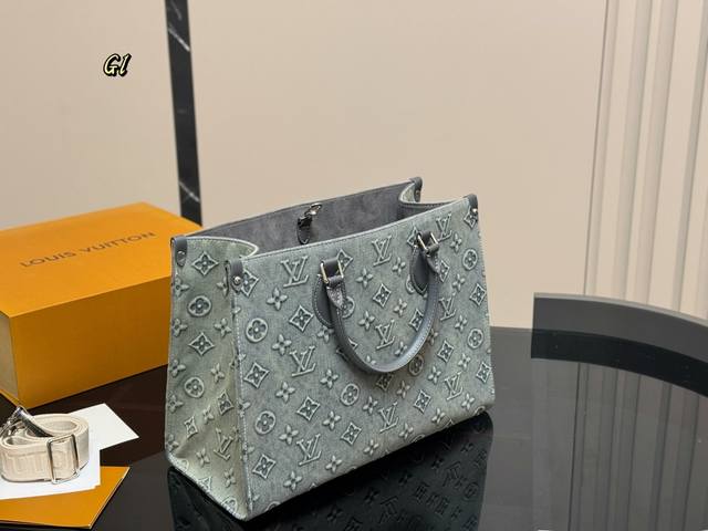 / ¥250 配盒 size:34.28Cm lv Onthego牛仔购物袋 有隐藏的背带设计, 可单肩~可手提 搜索 Lv Onthego丛林购物袋 配折叠盒