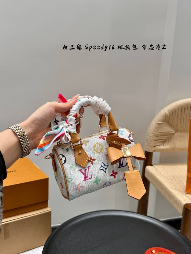 白彩Mini小枕头Speedy Nano太绝啦白底搭配缤纷老花,经典又时髦。