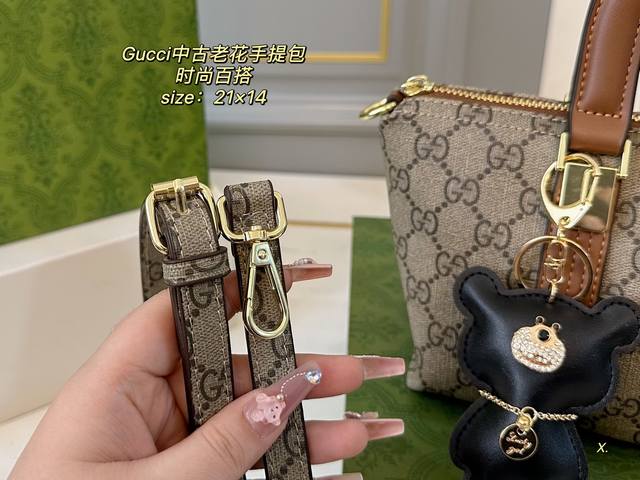 / p160(配盒) size:21×14 gucci古驰新款老花中古手提包 经典老花设计,辨识度超高~ 拉链开合 方便分类,配长肩带 随意搭配,时尚而实用的小众款