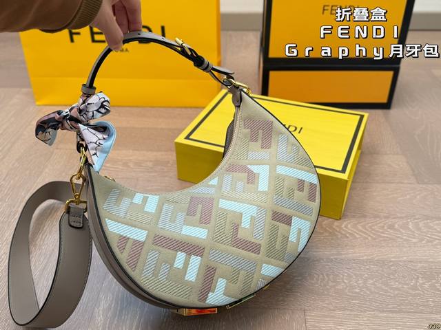 ¥220折叠盒 芬迪Fendi Graphy月牙包 经典对未来的展望 时尚百搭 上身又A又飒 尺寸大号29 16