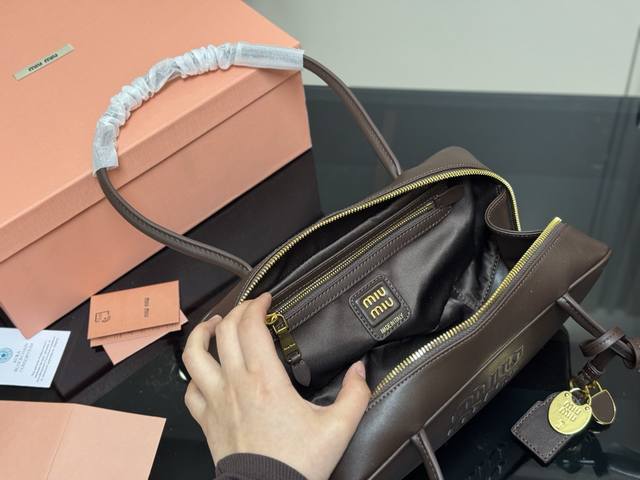配盒 Size:35*22Cm Miumiu保龄球 公文包 对版面料 皮质光滑细腻柔软, 棉质缎面衬里。 背起来都很Nice 哦 可手拎也可斜挎!...