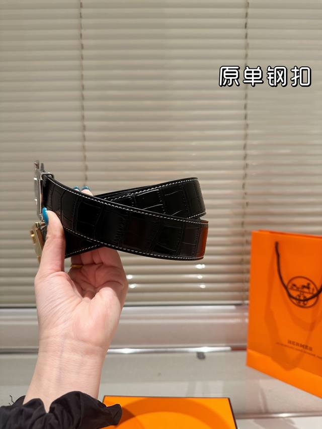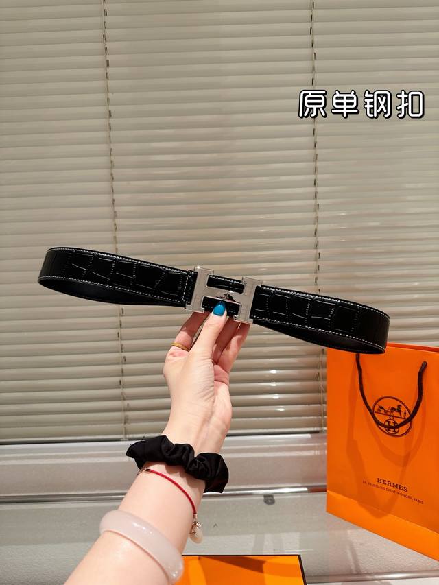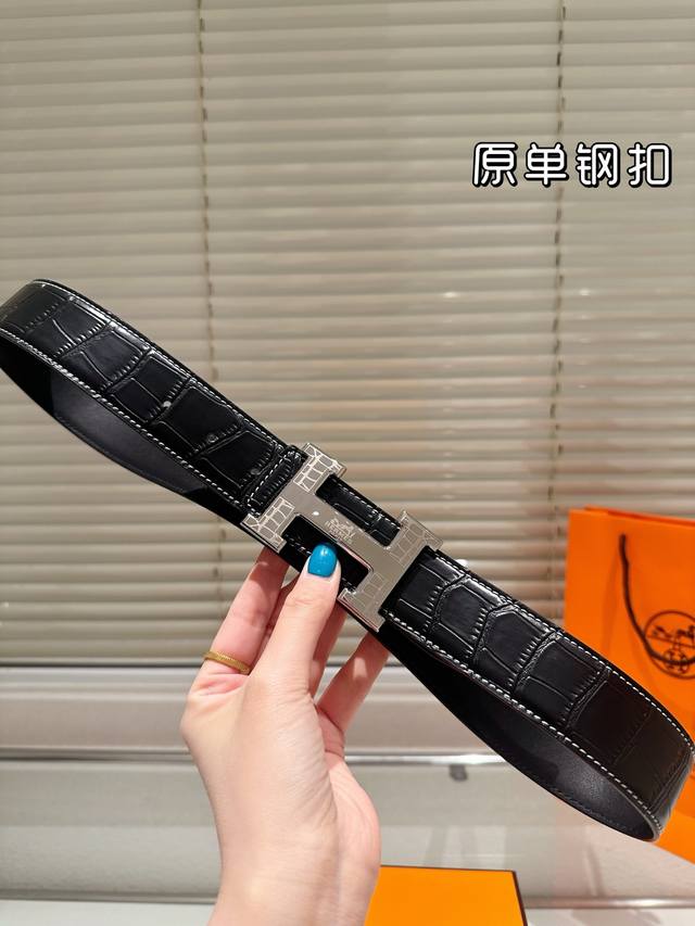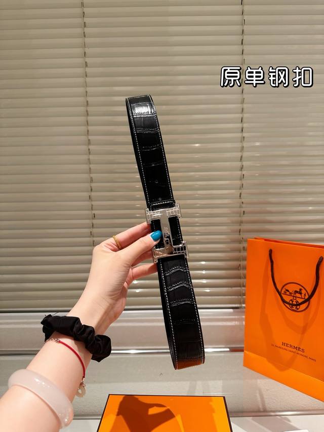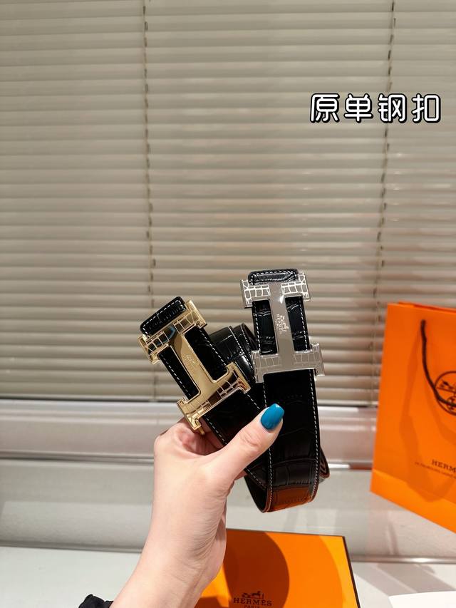 / 钢扣P180 高版本!腰带[嘿哈]爱马仕牛皮皮带~热门款 男女通用皮带里面最火的版本啦~质量很好 全套包装!五金绝对不褪色 皮带头和专柜一样的哦~ 配礼盒手提袋