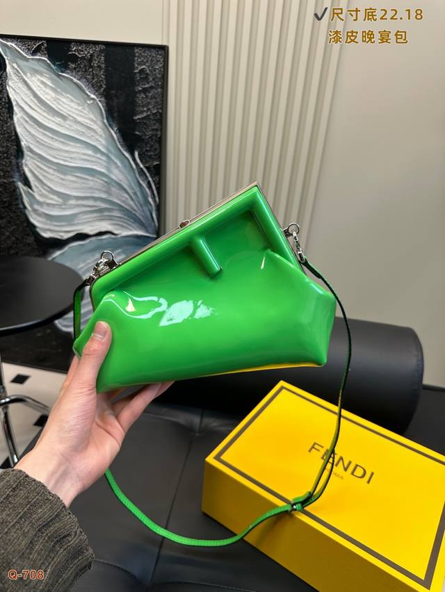 芬迪Fendi的包包越来越好看了,特别是这款,爱不释手!设计颠覆了以往的包包,新款Fendi 漆皮First的轮廓融入了Fendi首字母F的造型,很特别,简直处处精彩,通勤,晚宴什么都能搭,优雅中带着一丝酷飒,太喜欢!