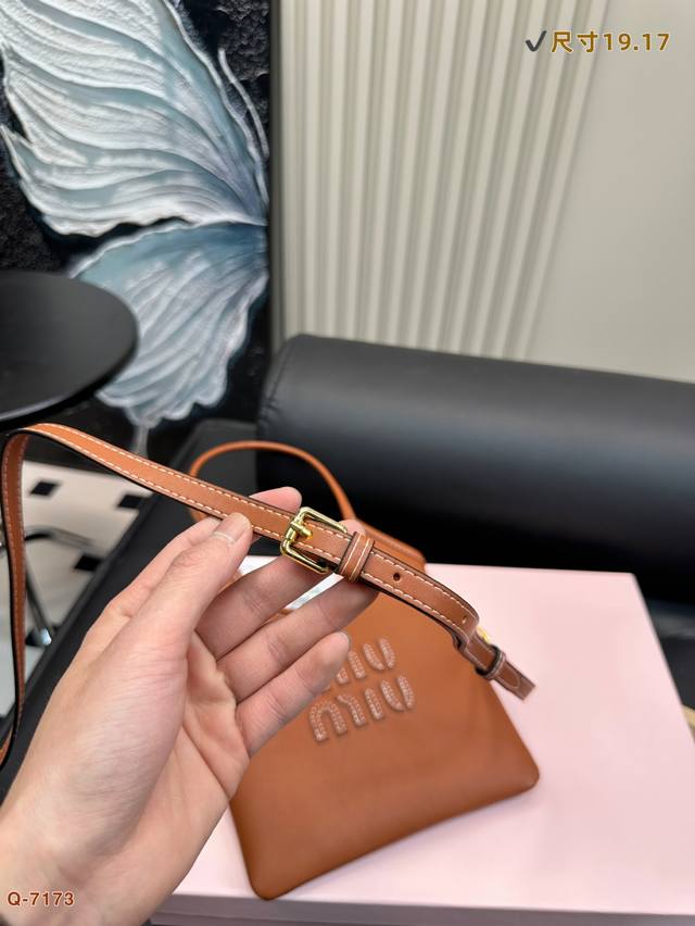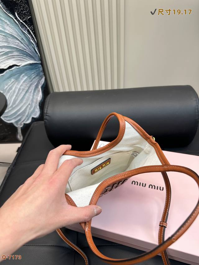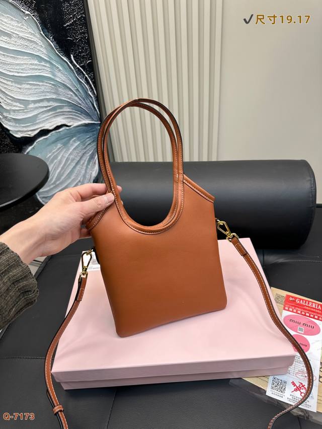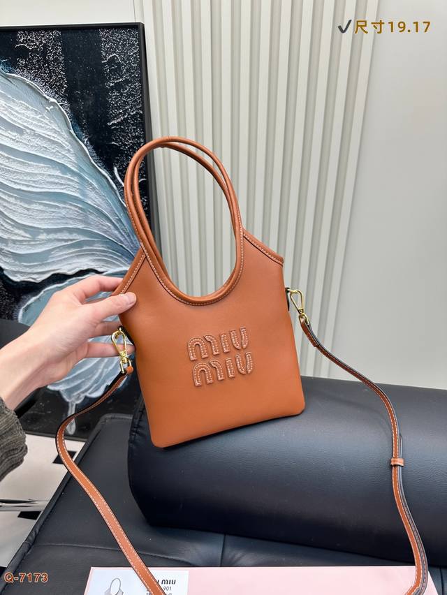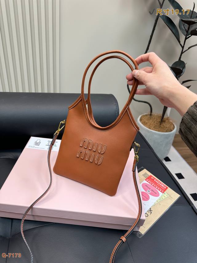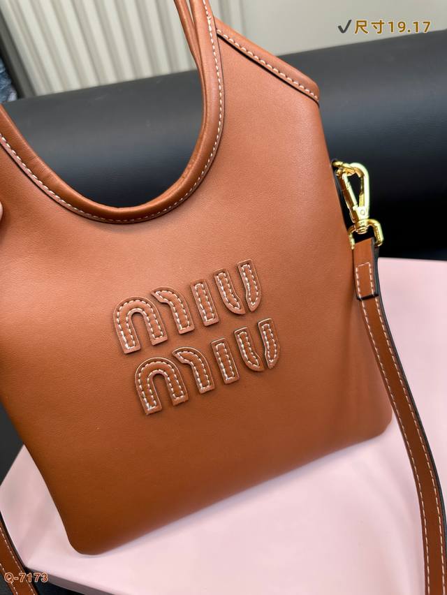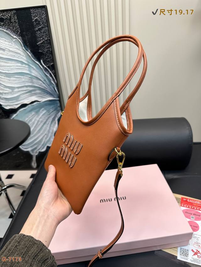 缪缪Miumiu家新品迷你托特包,新尺寸小巧可爱适配度高,时髦别致又百搭,细节精致考究,经典浮雕字母徽标增添别具一格的格调与辨识度,延续 Miu 复古风,随性酒脱,配有可拆卸可调节皮革长肩带,可肩背手拎斜挎实用性更好,缎面衬里,带贴袋!