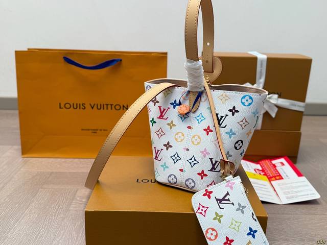 / p230飞机盒芯片版 lv&村上隆联名系列 25Allinbb白彩水桶包 高颜值 潮酷时尚女孩必入 适合日常 通勤 出街 尺寸16 18