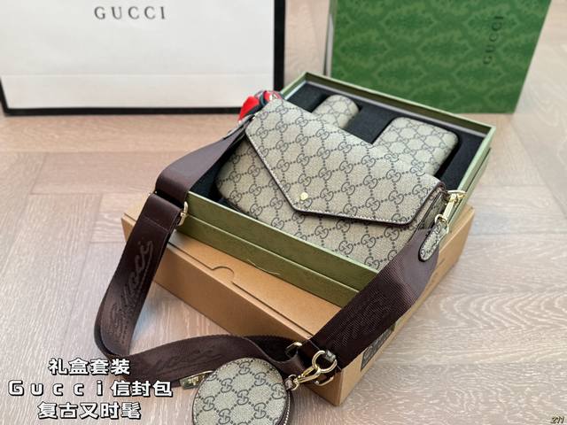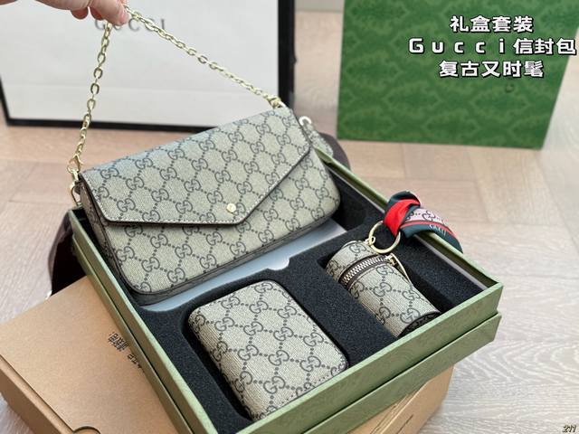 p160礼盒套装 gucci酷奇信封包 简约才是百搭公式。 复古又时髦,妥妥的街拍神器。 出街通勤都可。搭配很显高级感。 尺寸 22 12