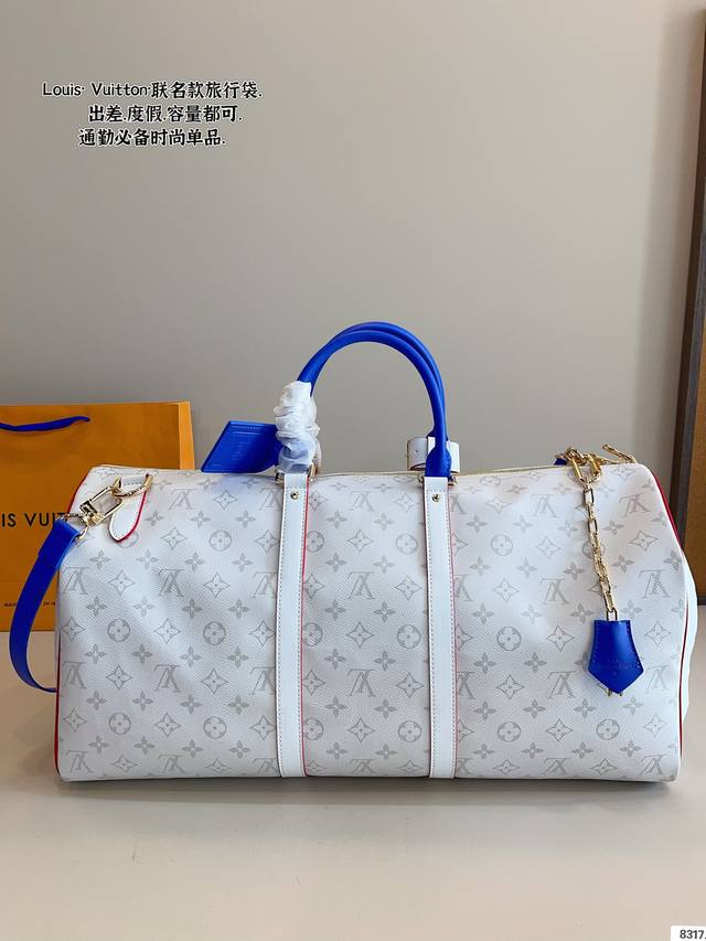 Lv 路易威登联名款Keepall 斜跨包旅行包 一只帅气能装的旅行袋 时尚爆发款火热来袭 经典设计大气可观男女通用款 包包采用原版皮质 超级厚实 耐磨/耐用原版Logo五金 容量超大装衣服/鞋子超能装 无论是手提还是斜肩背上 都超好看. 尺寸:55*20*27Cm