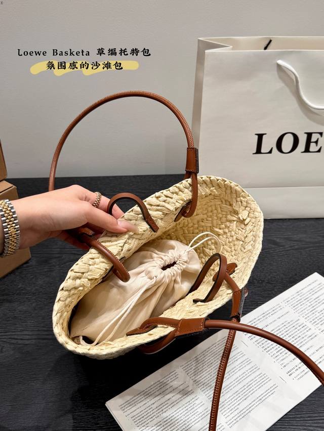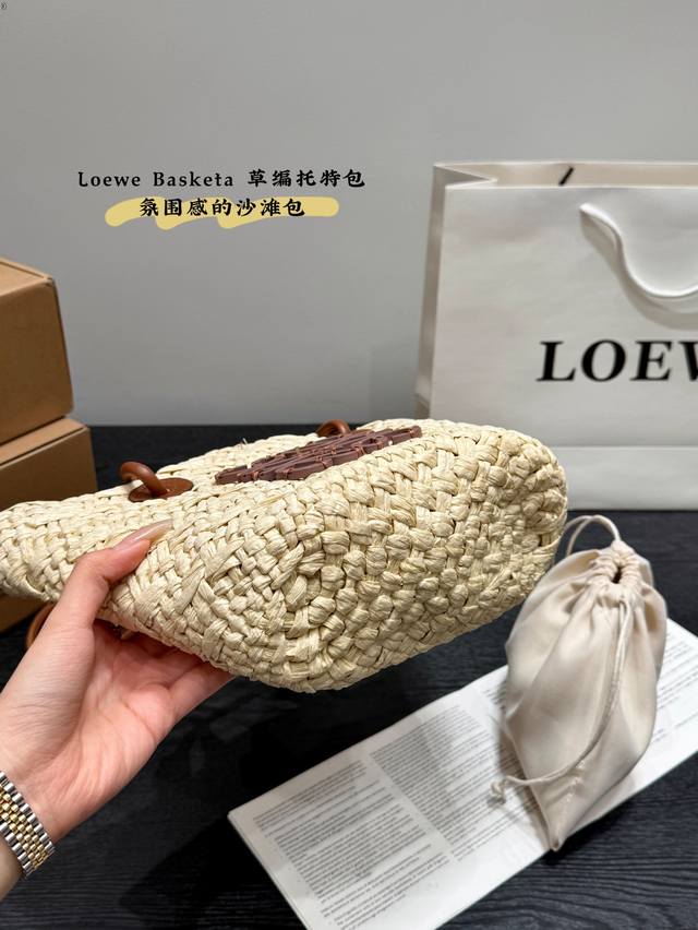 Loewe罗意威 夏季新款草编包basket Bag 菜篮子 编织拼皮购物袋沙滩度假手提包。尺寸:30 25Cm