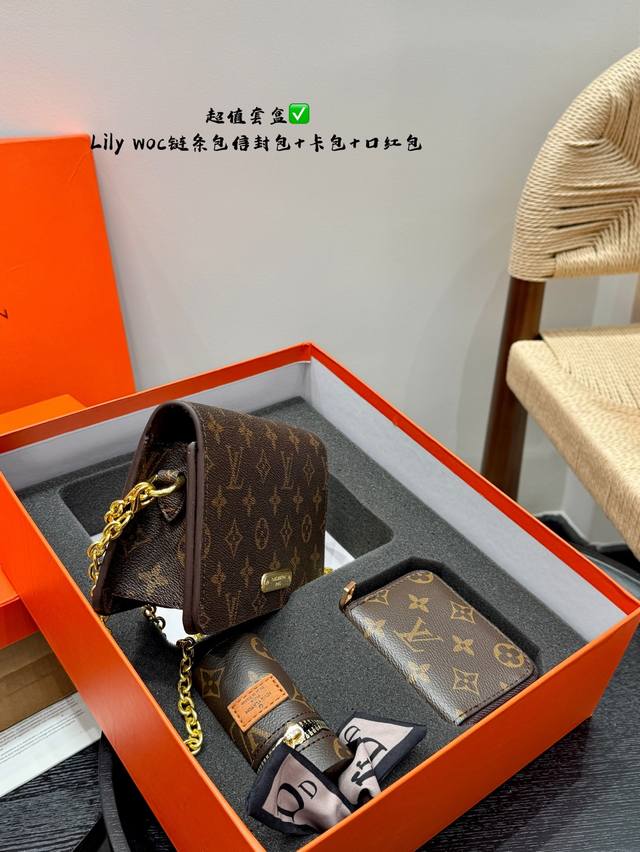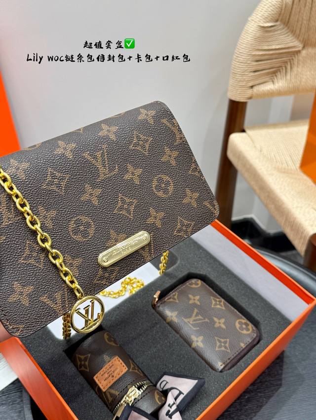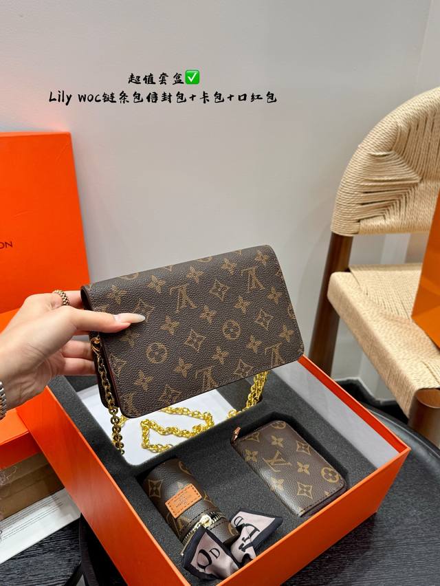 / p160 超值套盒 lv Lily Woc链条包信封包 卡包口红包礼盒 尺寸21Cm