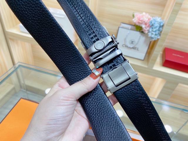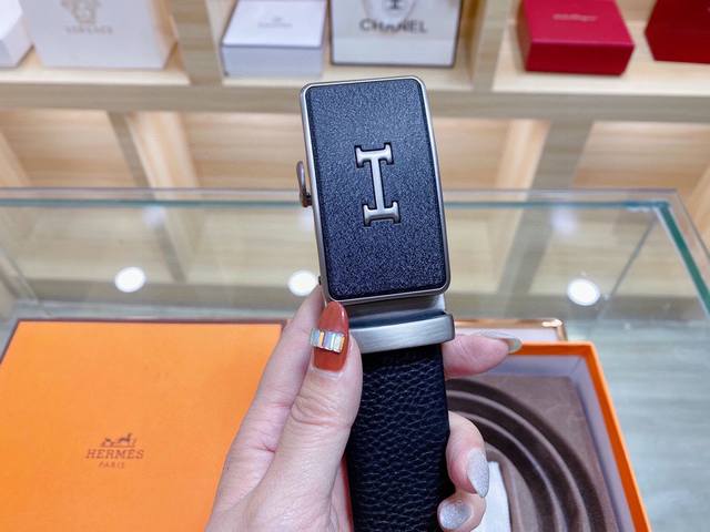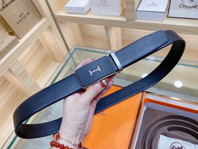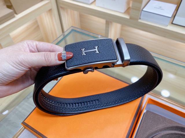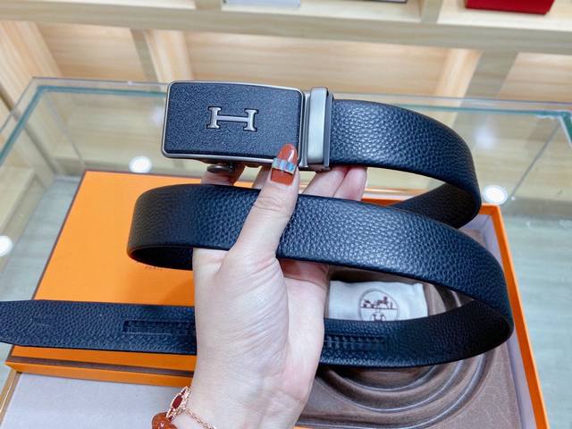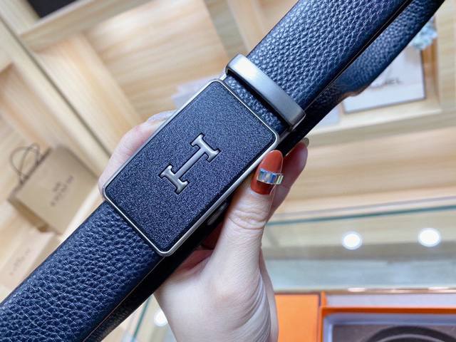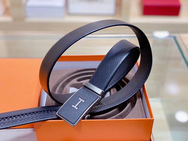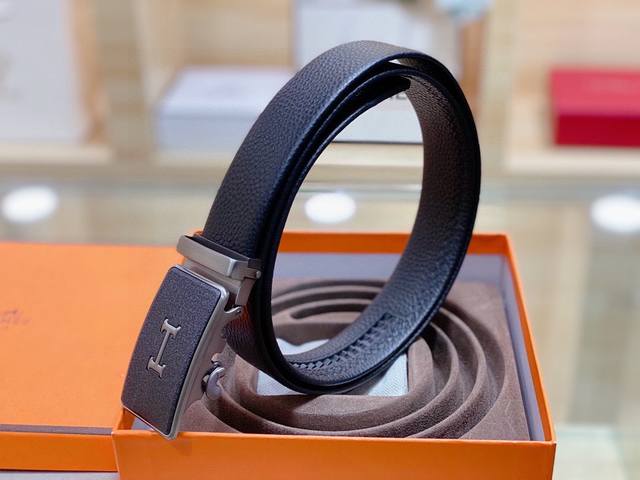 自动无孔腰带 Hermes爱马仕35Mm精致h自动扣,头层牛皮腰带,完美佩饰!