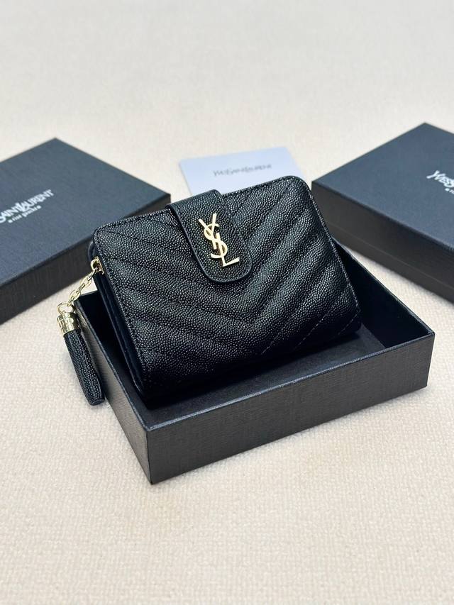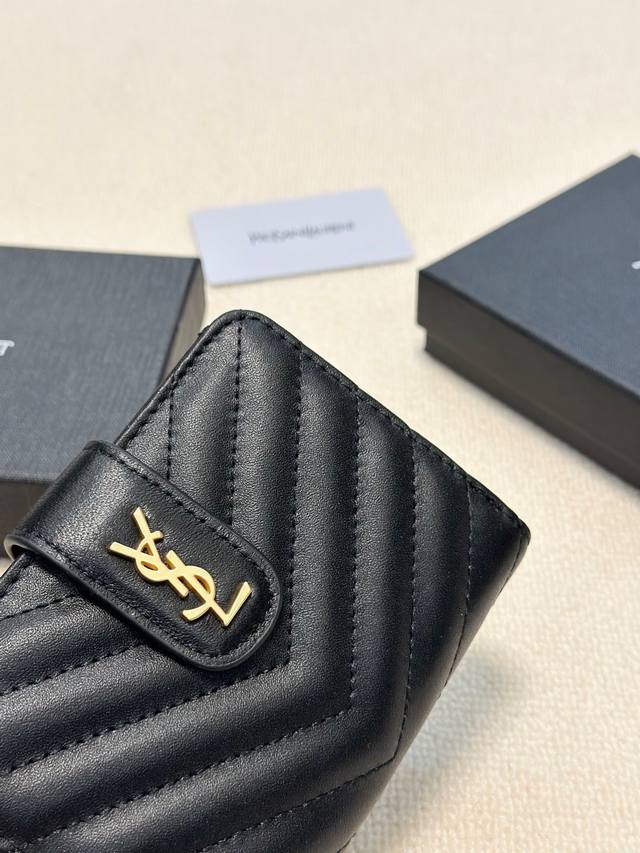 / p140颜色 黑羊金 黑球金尺寸 15X10圣罗兰款三折短款钱包皮质感一流独一无二风格,实用内阁超美超时尚美女必备单品