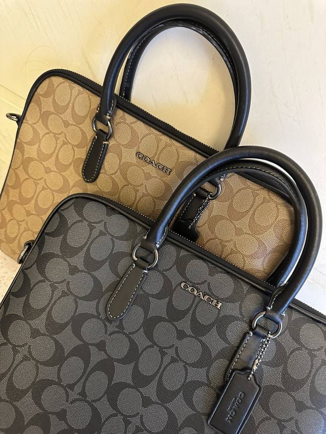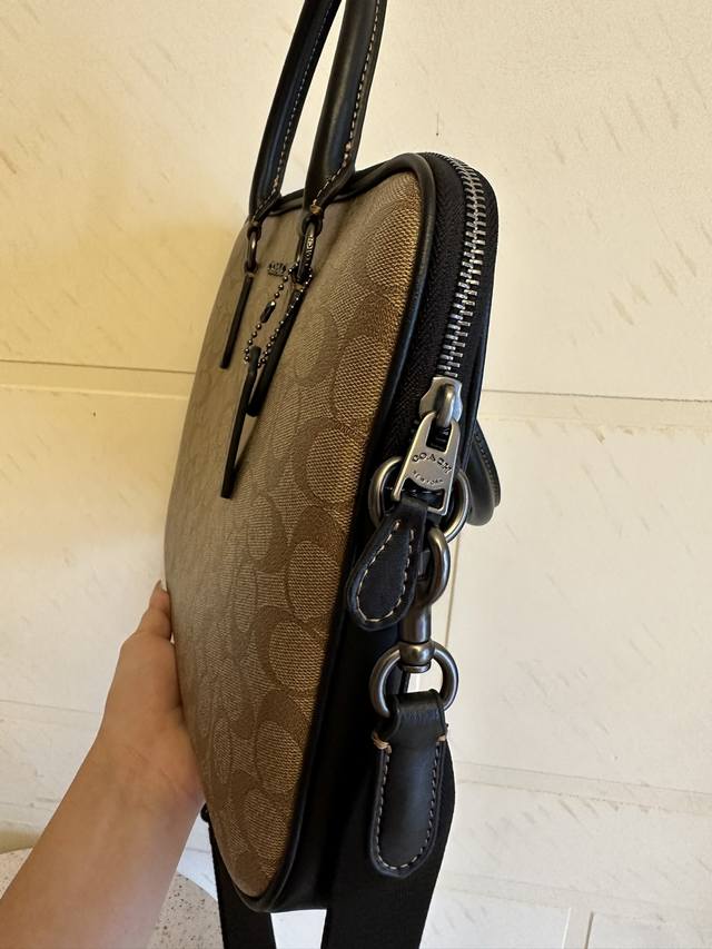 / p460【新款】Coach/蔻驰Cj630奥莱男包经典标志Liam紧凑型公事包,人造革,内置拉链袋和多功能袋,拉链开合,织物衬里,垂直长度8.5Cm手柄,外置开