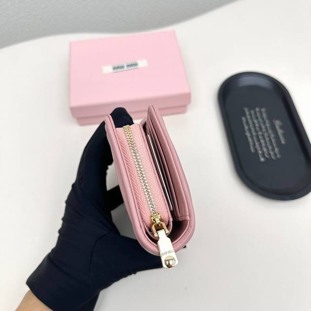 / p140Miumiu 8357颜色 黑 粉尺寸 13.5X9.5X3.5专柜最新款火爆登场!采用头层小羊皮,做工精致, 媲美专柜!多功能小钱包,内隔丰富,超级实