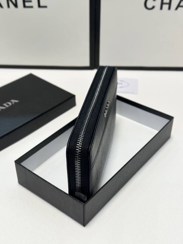 颜色 黑尺寸 21X10型号 8816普拉达手包牛皮手感一流内置卡位外附手机位男士必备