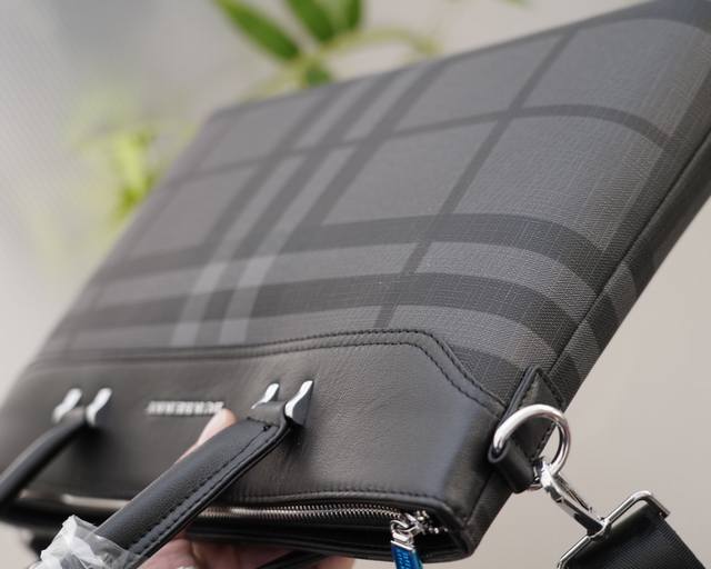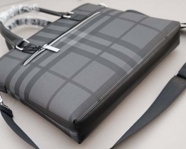 B家顶级原单 精致立挺设计,装饰 Burberry 格纹,搭配皮革边饰和品牌徽标。 25.5 X 6.5 X 21.5Cm 型号: 80697921 外层:75