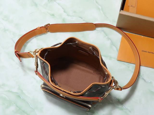 p810【顶级原单 独家实拍】M14017老花黄皮 中古水桶包 Noé Cargo 手袋 路易威登 Noé Cargo Jmlt 水桶包以 Monogram 帆布构型,配以做旧感皮革饰边,传承了 1932 年为携带香槟酒瓶而设计的 Noé 水桶包。宽大前袋和精琢细节致意了路易威登的悠久历史,同时满足现代需求。顶部手柄和肩带均可拆卸,实现灵活便携。24 X 16 X 22 厘米。