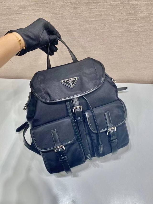 批550 新款背包1Bz677A这款尼龙双肩包采用精致Saffiano皮革饰边,融合多种材质,并饰有散字唛徽标,翻盖设计和前面两个口袋,彰显时尚优雅魅力。轻便又实用,上身效果超有范,又随意搭配全面升级尼龙面料