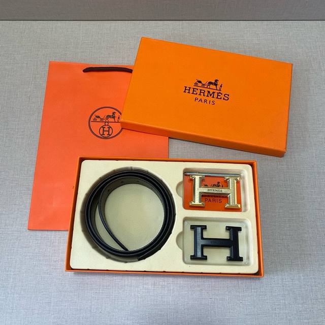 双扣皮带:头层皮质带身搭配3.8Cm广州原版扣头