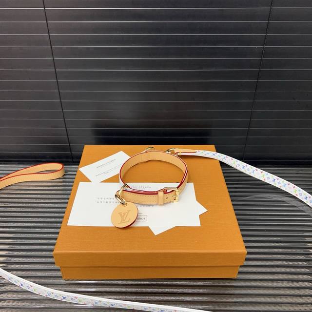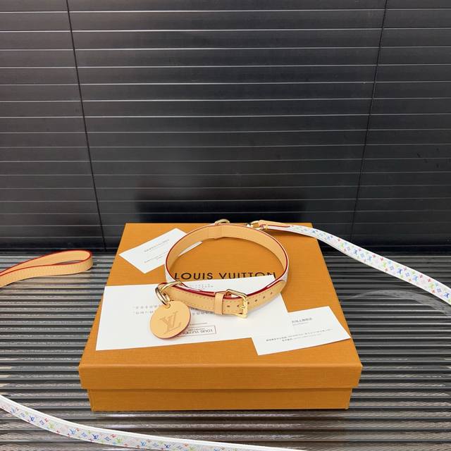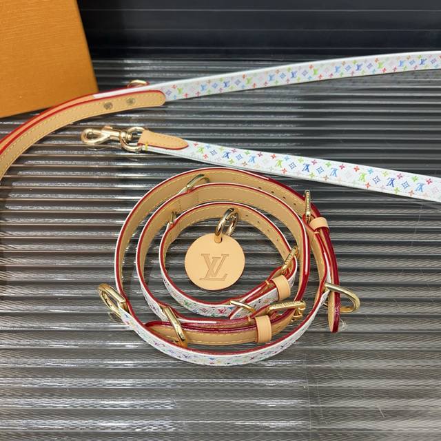 / Louisvuitton 路易威登 村上隆白三彩牵引绳宠物绳 可脱卸调节 猫狗项圈 颈圈 大号50Cm 中号43Cm 小号31Cm