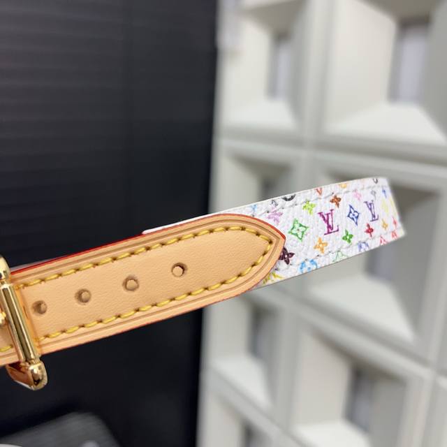 Louisvuitton 路易威登 村上隆白三彩牵引绳宠物绳 可脱卸调节 猫狗项圈 颈圈 大号50Cm 中号43Cm 小号31Cm
