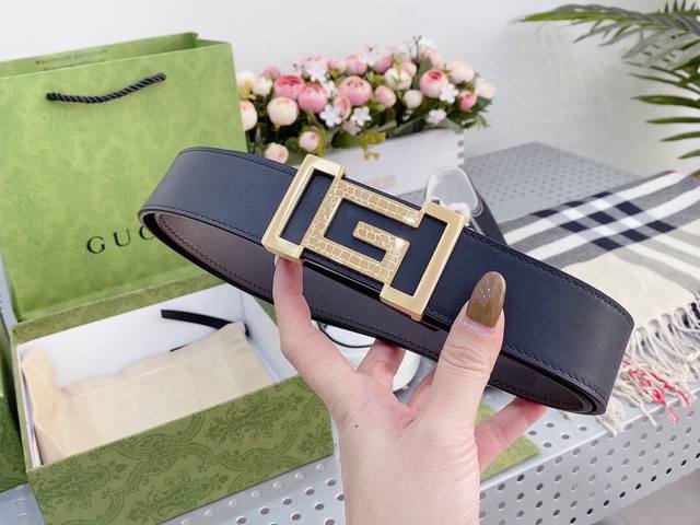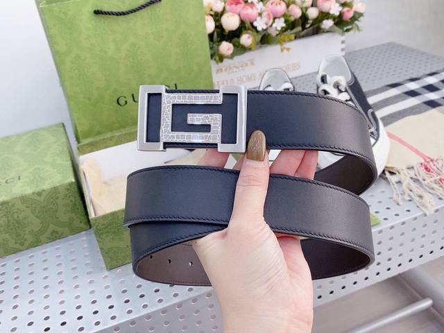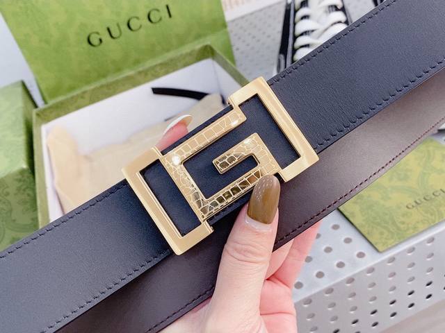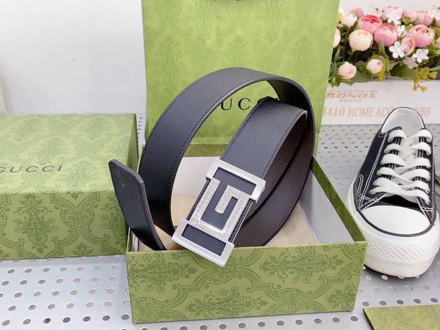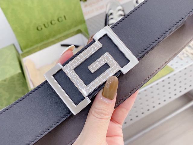 古驰gucci精品款 ☆双扣礼盒套装 含礼盒 专柜有售 Gucci专柜在售正品 此款采用头层牛皮制作 走线油边细致 正品开模...
