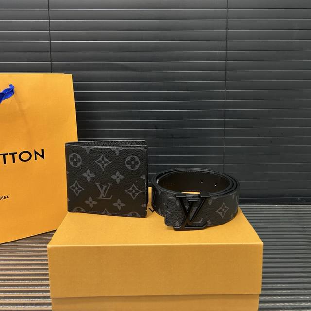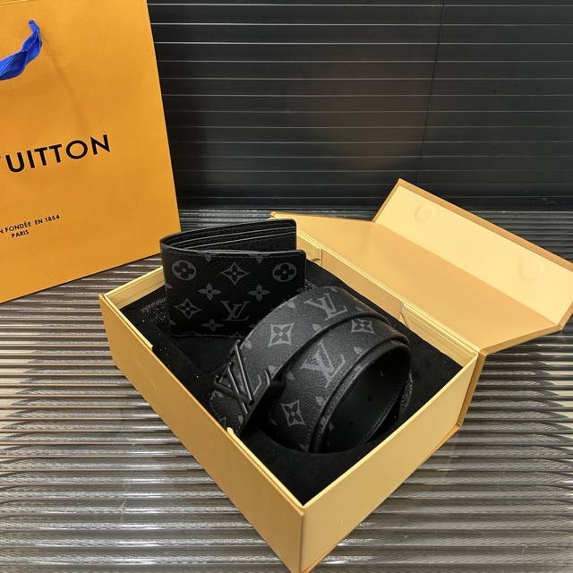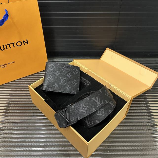 Louisvuitton 路易威登 二合一套盒 腰带 西服夹钱包 男士精品百搭款 优质合金扣头 高品质 全套包装 礼盒