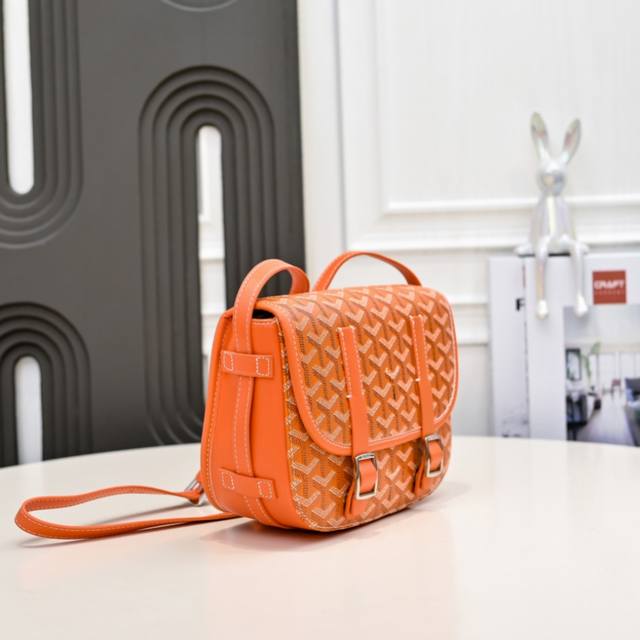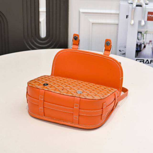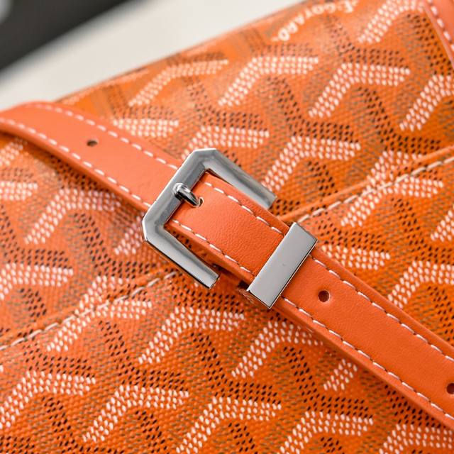 工厂P直销 橙色 G0Yard 戈雅 经典款双扣邮差包,男女通用,是一款复古的造型又不缺新鲜感的的包,耐看又轻便,肩带长短可调节,即可斜跨又能单肩,内含两个小夹