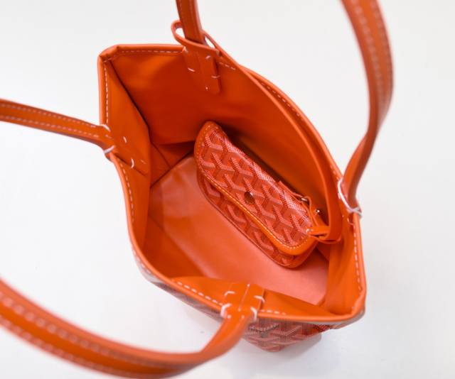 后期推出的Anjou手袋和Saint Louis的区别就是它真正可以实现双面使用,一面是标志性Goyardine防水涂层帆布一面是柔软小牛皮。迷你号别看它小 内部容量相当到位 利用率非常高,日常出行穿搭统统都能轻松驾驭,依然配有内袋小包贵重安全收纳 是最佳适用款。