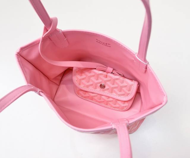 后期推出的Anjou手袋和Saint Louis的区别就是它真正可以实现双面使用,一面是标志性Goyardine防水涂层帆布一面是柔软小牛皮。迷你号别看它小 内部容量相当到位 利用率非常高,日常出行穿搭统统都能轻松驾驭,依然配有内袋小包贵重安全收纳 是最佳适用款。