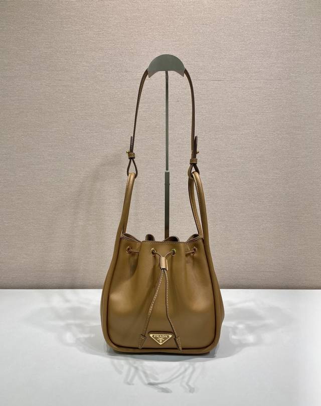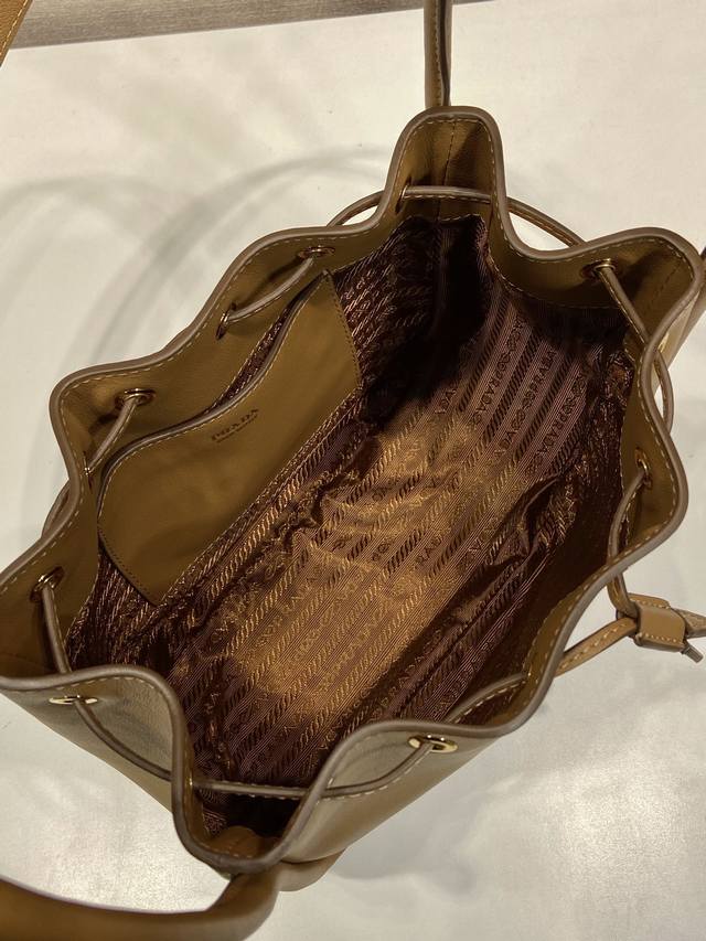 / 新款水桶包1Be087 这款水桶包采用进小牛皮,配有一条可拆卸长肩带,多种背法。又可手提又可肩带,袋口为抽绳设计,功能性強,太完美空间大,上身效果好看又时尚,宝
