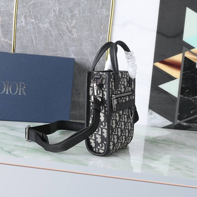 这款 Safari North-South 迷你手袋是二零二四春季男装系列新品,兼具高雅风范与实用功能。采用米色和黑色 Oblique 印花面料精心制作,饰以黑色粒面牛皮革装饰提升格调。手袋隔层和正面拉链口袋可收纳各种日常用品,皮革带和 D 形饰环可悬挂各种配饰或无线耳机套。搭配顶部皮革手柄和可调节肩带,可手提、肩背或斜挎。
