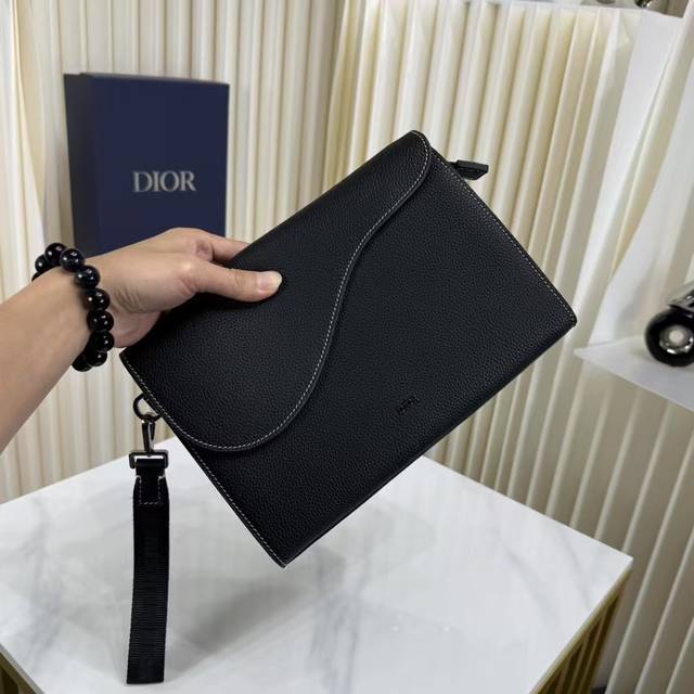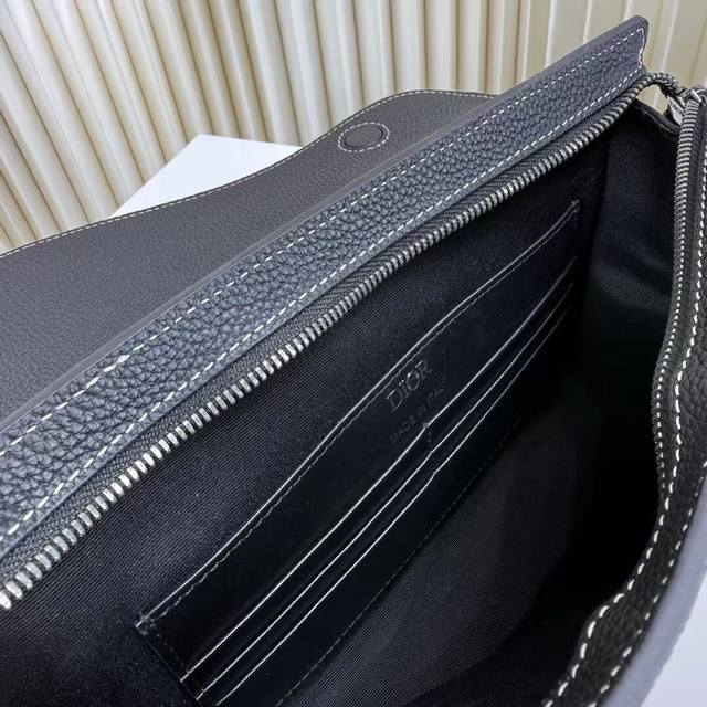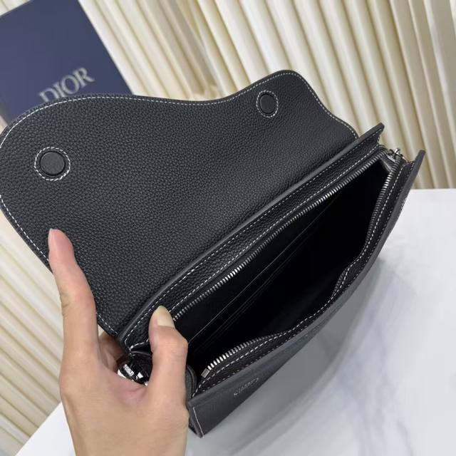 这款 A5 三角手拿包是 Dior 的全新主打单品。采用黑色粒面皮革等材质精心制作,搭配马鞍廓形翻盖,宽敞的拉链隔层可收纳手机,另外还设有卡槽。搭配可拆卸的腕带,便于手提或放入手袋中。