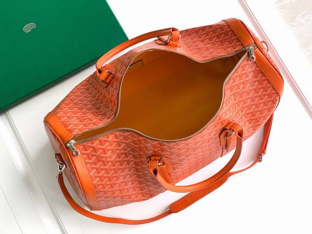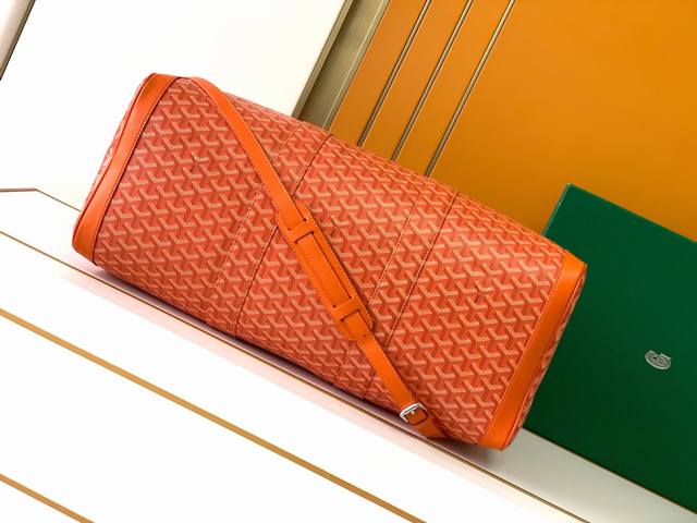 旅行袋,6888#橙色,原单高品质,戈家持续更新配色,添加更精致的色调。新配色和色彩组合为品牌标志性单品注入新意,彰显现代格调。这款戈家系列采用自家标志性Pvc的彩色调头层皮组合,彰显了戈家为品牌标志性设计元素注入现代魅力的设计实力。尺寸55X24X28----