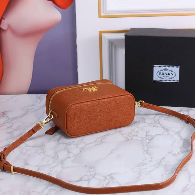 回货盒子包1Bh202 这款简约盒子包采用进口鹿皮纹,内配进口羊皮和实用卡槽 口袋,正面饰以金属徽标,可拆卸可调式肩带又可手提,拉琏开合。上身效果非常酷又实用,