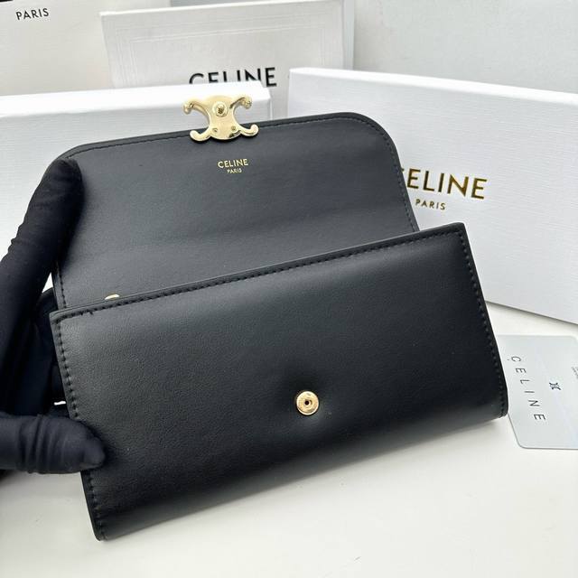 Celine颜色 黑色尺寸 19*10*3 Celine短式钱包非常炫美的一个系列,专柜同步,采用头层牛皮,精致时尚!