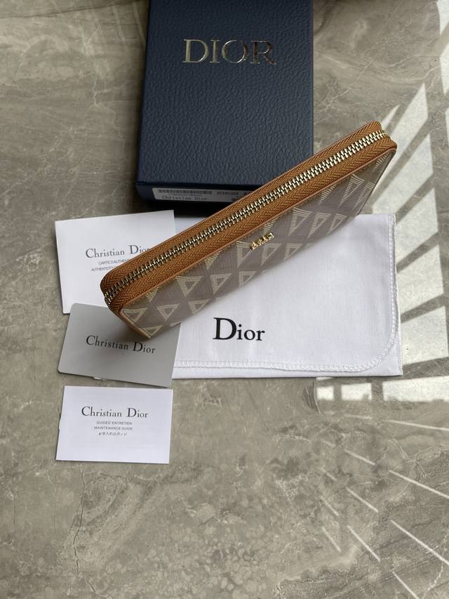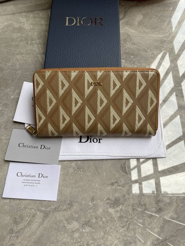 / Di0R 棕色帆布Cd Diamond图案,棕色光滑牛皮中间的拉链隔层可放置硬币,两个现金隔层和12个卡位提供充足的收纳空间。长款拉链式钱包,优雅宽敞,是日常的