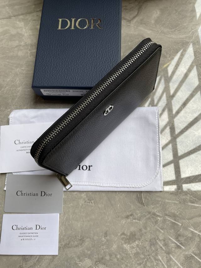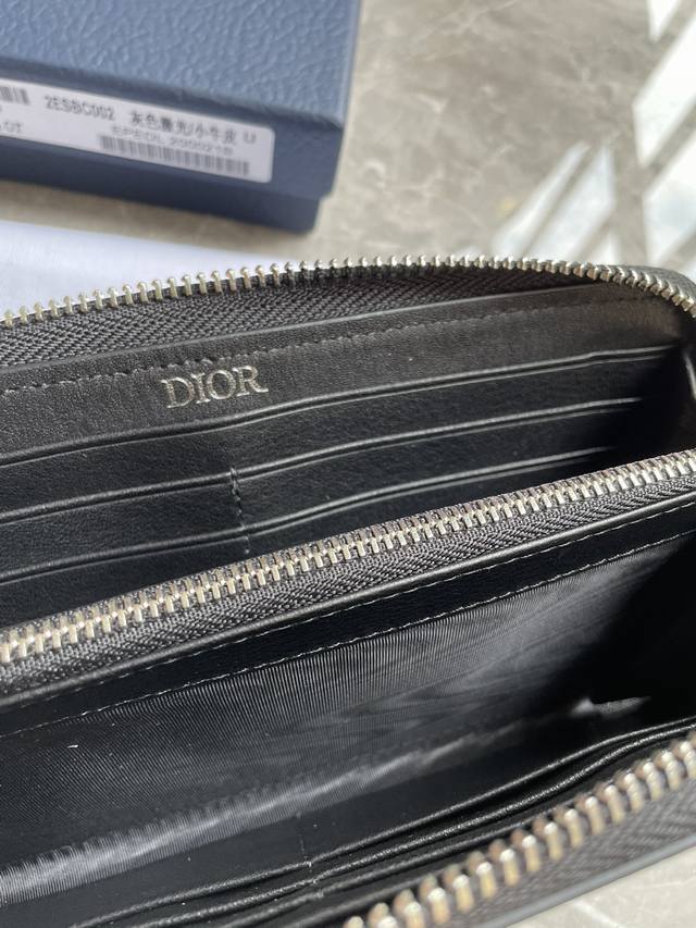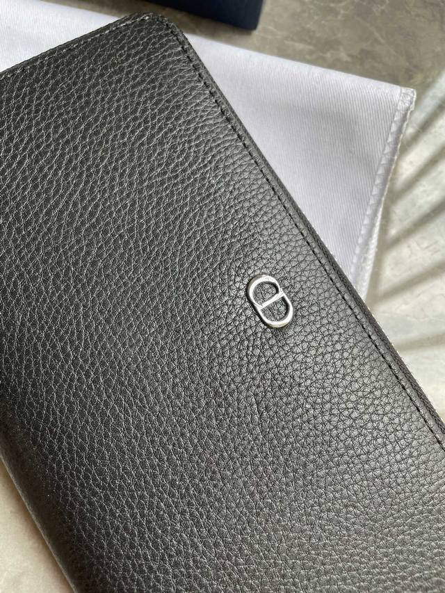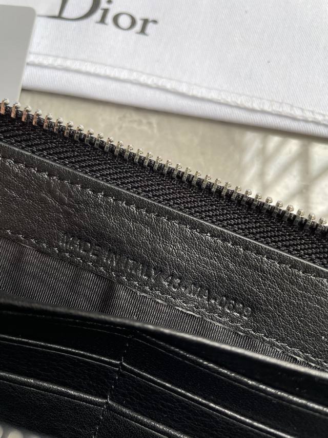 Di0R 黑色粒面牛皮革中间的拉链隔层可放置硬币,两个现金隔层和12个卡位提供充足的收纳空间。长款拉链式钱包,优雅宽敞,是日常的理想良伴。型号2Esbc252尺