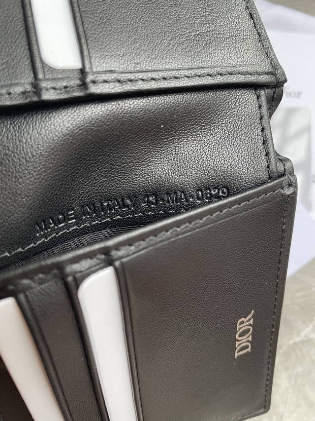 / Dior 男士短款钱夹,采用黑色Cd Diamond 图案光滑牛皮,双折款式,搭配黑色头层牛皮,内置1个双层现金隔层,2个票据隔层和8个卡槽非常实用,内含防尘袋