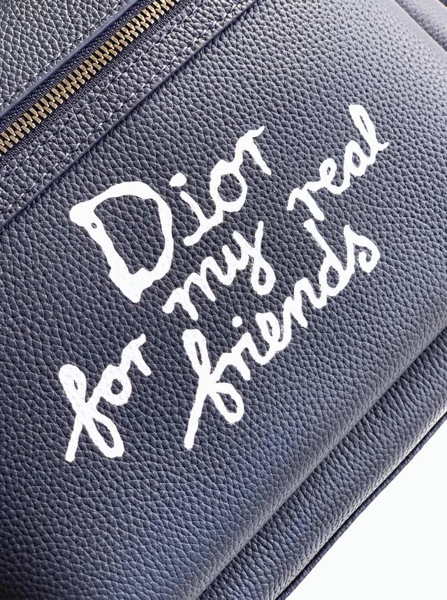 全市场最高版本 这款 Rider 2.0 拉链双肩背包来自 Dior And Hylton Nel 限定系列。采用海军蓝色粒面牛皮革等材质精心制作,正面大号拉链口袋饰以来自 Dior And Hylton Nel 联名系列的白色 Dior For My Real Friends 标志印花提升格调。拉链开合,搭配可调节的加垫肩带,是日常生活的理想配饰。