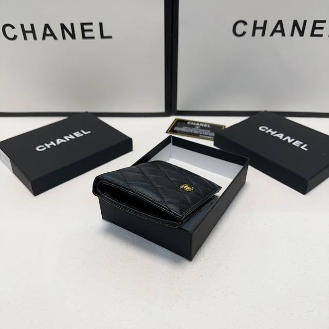 颜色 黑尺寸 19X10香奈儿爆款羊皮两折钱包款式经典做工精细耐磨耐用手感极佳
