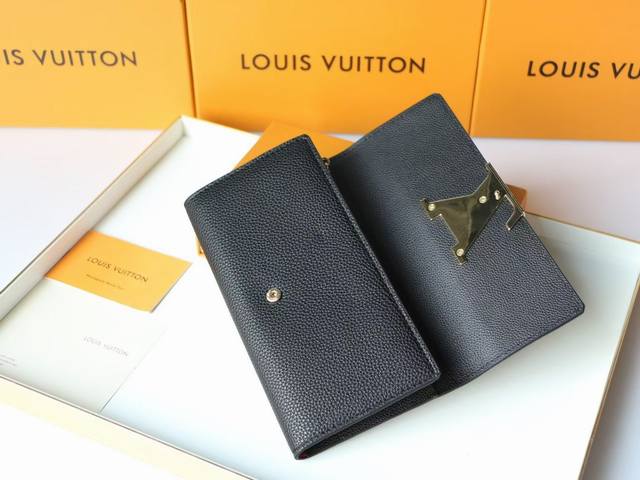 / 颜色 黑 粉 卡其尺寸 20X11型号M61248 缀以皮革覆面 Lv标志,这款优雅钱包的设计灵感来自经典Capucines系列,时尚而实用,并且足以容纳所有日