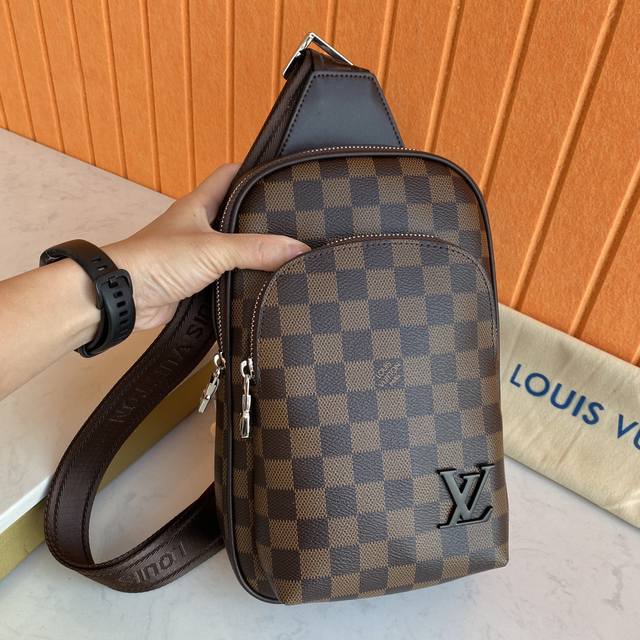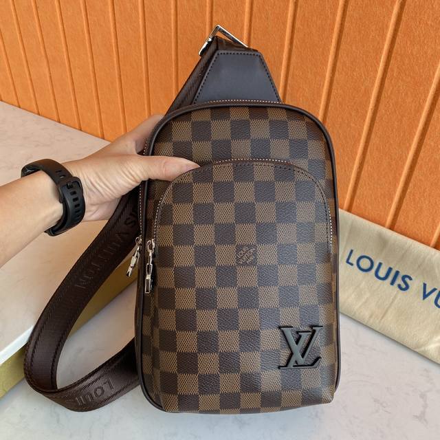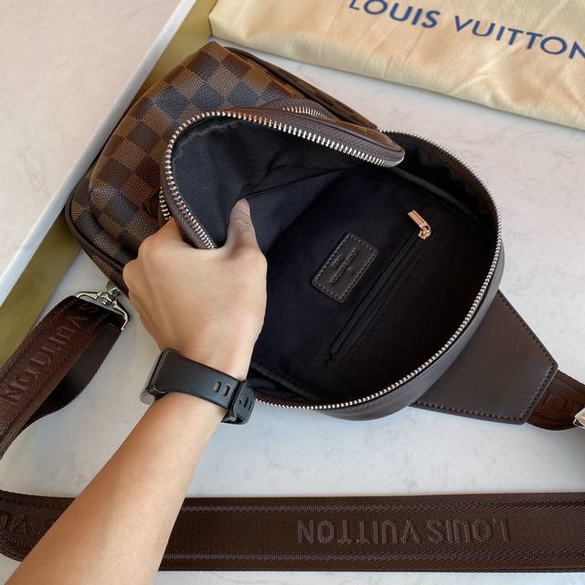 / 新款路易威登Lv胸包 进口台湾料配进口牛皮,顶级男士高端,原版皮。名师设计,资深裁缝手感超赞上身效果极佳设计理念独特,献给绅士的你,实物拍摄.触摸可及的效果[微