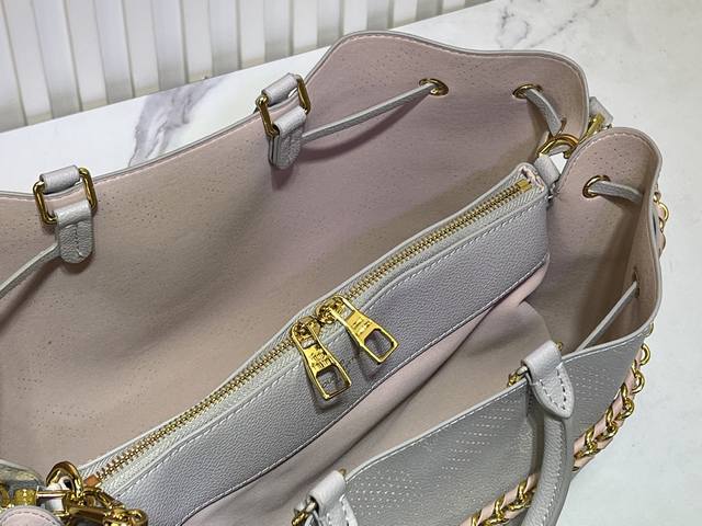 升级原版 M59203 M59 M59655。 Bella Tote 手袋型号Flight Mode 胶囊系列Monogram镂花穿孔牛皮革塑造舒软充裕的收纳空间,搭配皮革手柄、皮革及金属链条和可拆卸肩带,手提、肘挎和斜挎随心切换。尺寸:32*23*13