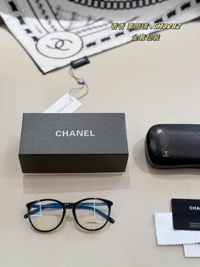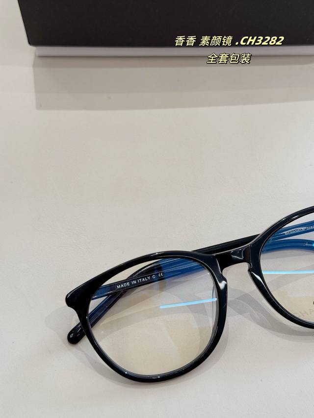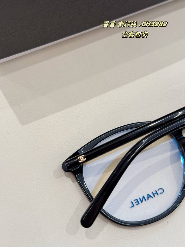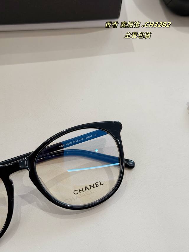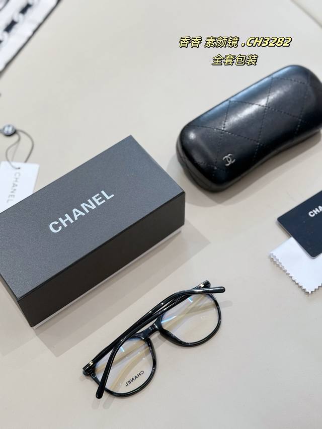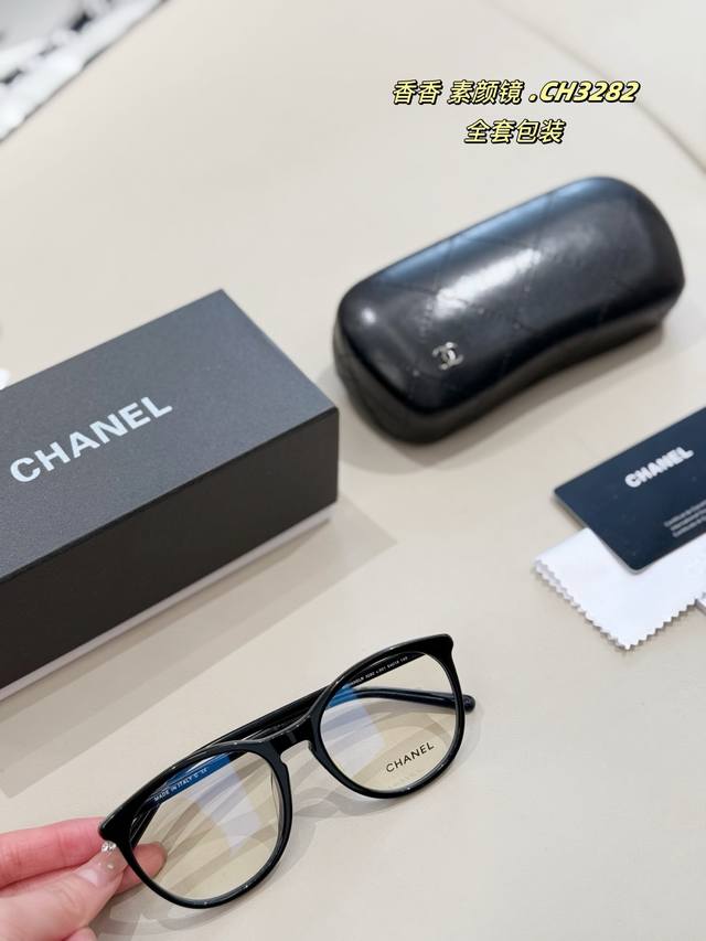 全套包装 Chanel镜框3282狠狠种草啦 Ch3282戴不腻的小黑框 可盐可甜,上脸就是乖乖女一枚~ 猫眼框设计,黑色板材搭配金色小香Logo,高级感拉满日