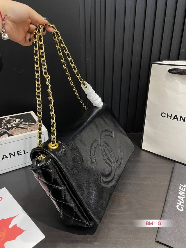 当季新款,全新,全新!链条包包刚刚抱出专柜,非常难买的款式,可单肩可斜挎,口盖就是酷酷的,牛皮的!经典百搭,简直不要太香喽~ 尺寸:32*21