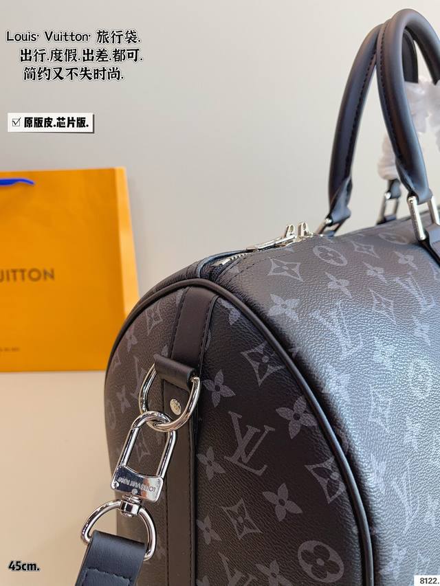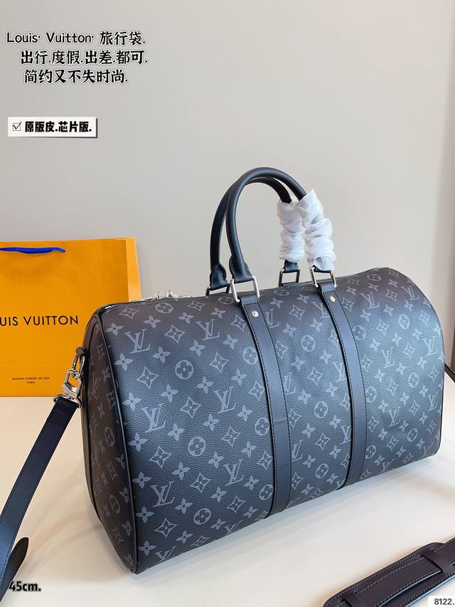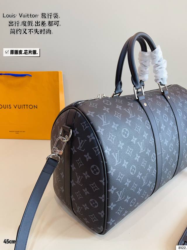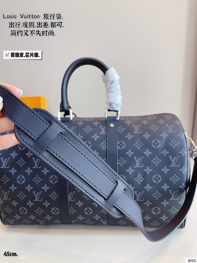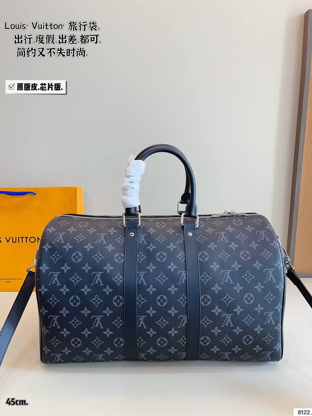 Lv 路易威登联名款Keepall 斜跨包旅行包 一只帅气能装的旅行袋 时尚爆发款火热来袭 经典设计大气可观男女通用款 包包采用原版皮质 超级厚实 耐磨 耐用原版Logo五金 容量超大装衣服 鞋子超能装 无论是手提还是斜肩背上 都超好看. 尺寸:45*20*27Cm