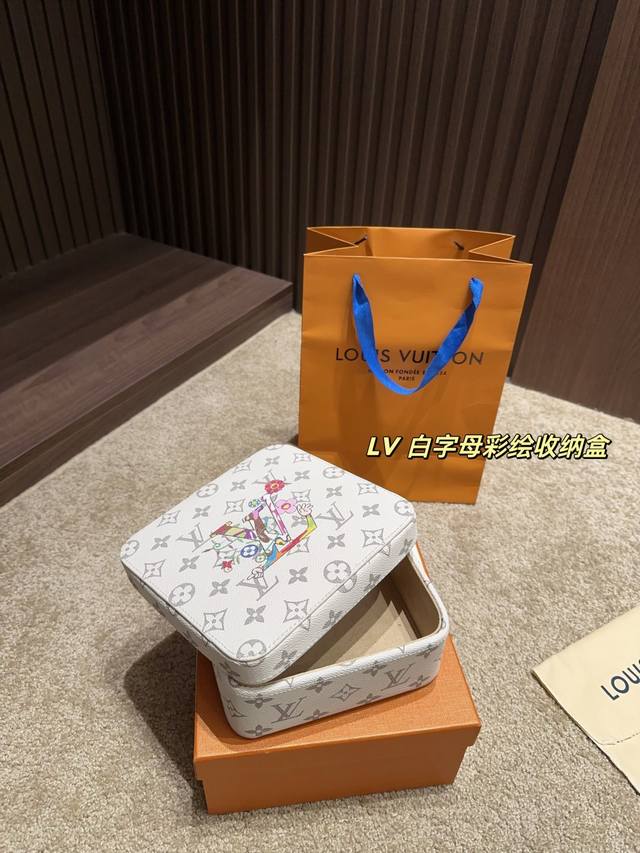 / 配盒尺寸17.7 Lv方形礼盒白字母彩绘收纳盒